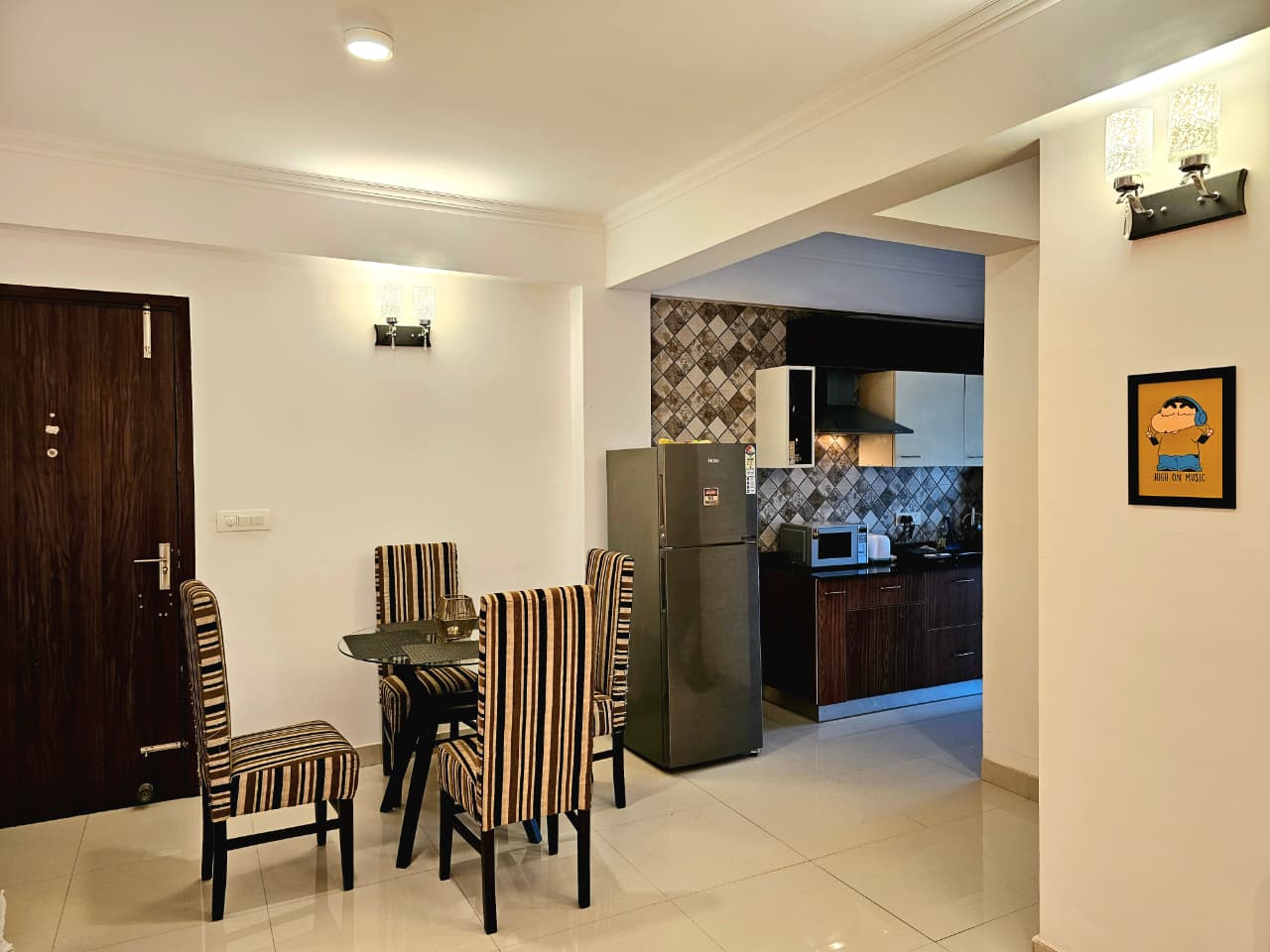 Walk or drive to hotspots like Pablo’s, Purple Martini, Kiki by the sea, Eva Café, Chapora lane, Titli, Thalassa, Baba Au Rhum and more.