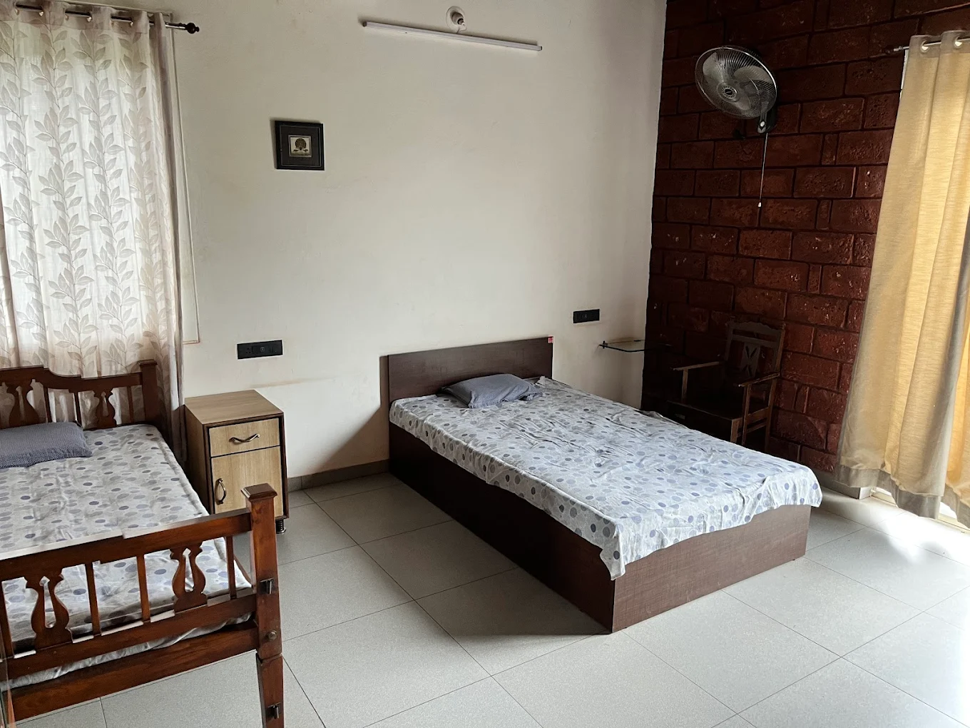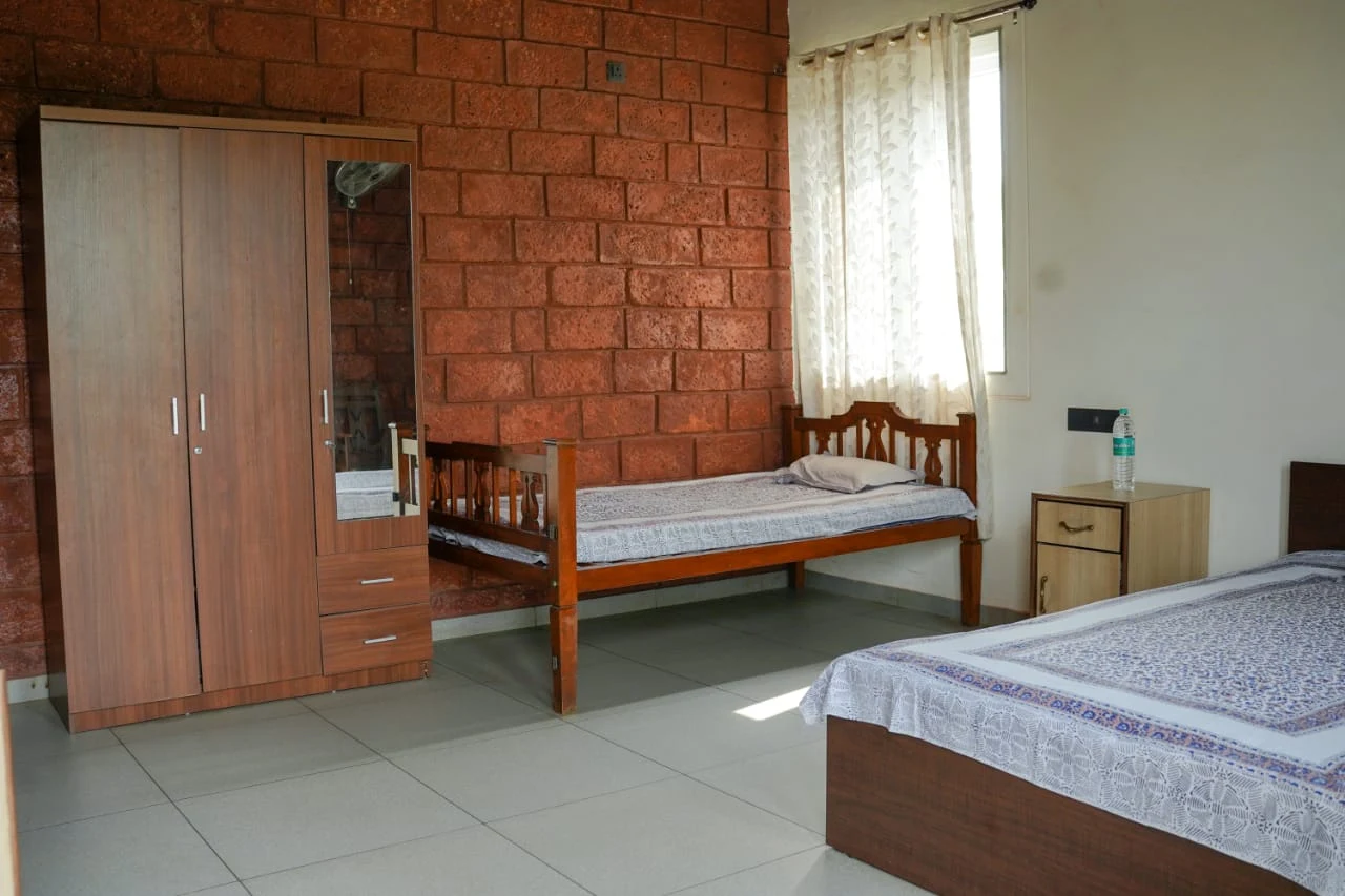 Bhide Farms features two thoughtfully designed rooms that open into lush surroundings and offer a comfortable blend of rustic simplicity and modern convenience. Both rooms come with cozy beds, en-suite bathrooms, and warm, earthy interiors that reflect the farm’s natural charm. Perfect for families or a small group, the rooms offer privacy, peace, and easy access to the garden, pool, and shared living areas. Whether you’re here to unwind, reconnect with nature, or simply enjoy quiet time, these rooms offer a stay that’s both soothing and memorable.