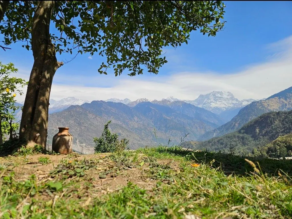 Chaukhamba Cradle is Set on a 2-acre farmland beneath vast blue skies, our rustic mudhouse offers a true escape from the everyday. Nestled between the sacred hush of the Kedarnath Wildlife Sanctuary and the snow-blanketed Himalayas, the property boasts uninterrupted, awe-inspiring views of the Kedarnath and Chaukhamba peaks. With cozy earthen rooms, a rustic cafe, crackling fires, home-cooked meals, and nature unfolding in every direction, this soulful retreat invites you to slow down, breathe deeply, and let each day feel like a blessing whispered by the mountains.
