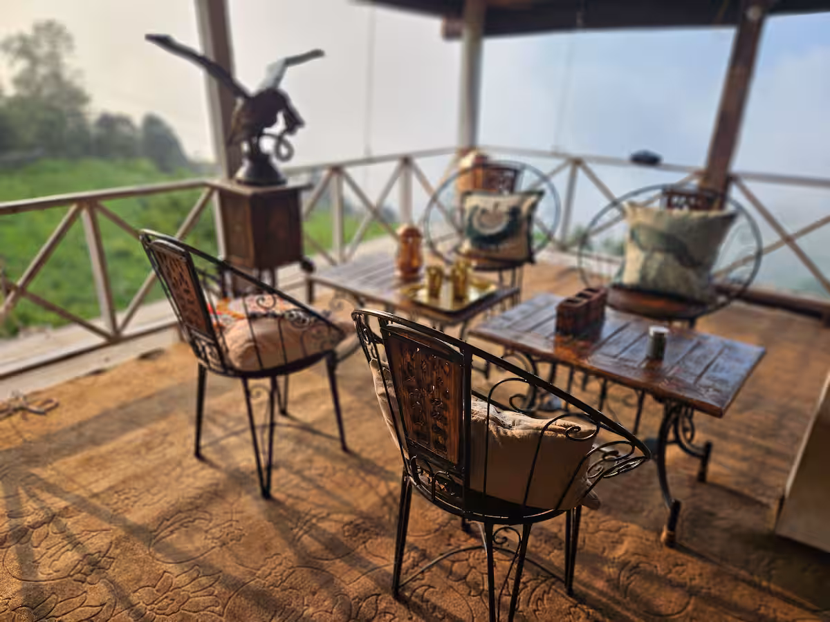 Your Private Sanctuary: Attached Living Spaces Each room features its own attached living area and private washroom. It’s the perfect spot for morning yoga, journaling, remote work, or simply sipping hot chai while soaking in the mountain views.