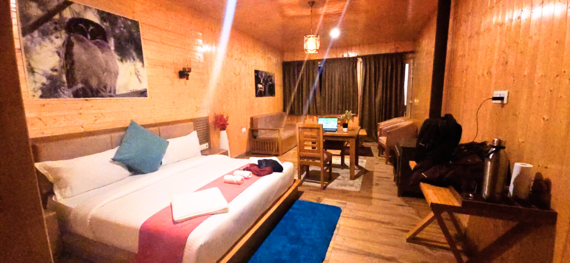 Bonfire evenings and outdoor seating under star-filled Himalayan skies.