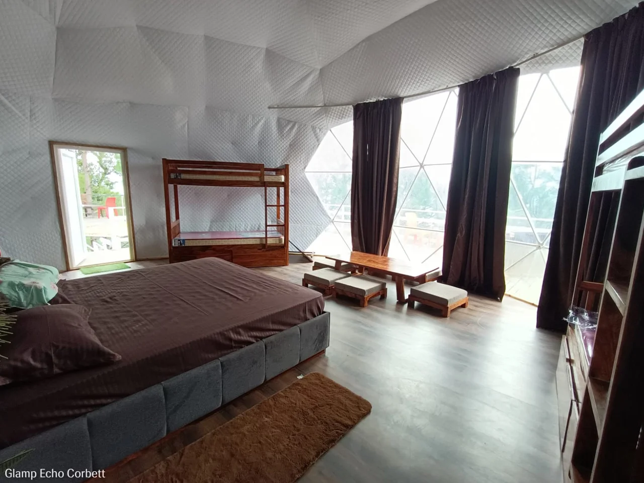 Welcome to Glamp Echo Corbett, an ultra-luxury glamping resort nestled between the lush greenery of Kalagarh and Corbett Tiger Reserves in Lansdowne. Here, futuristic Geodesic Domes rise like shimmering bubbles in the wild—offering the perfect blend of adventure, comfort, and style.