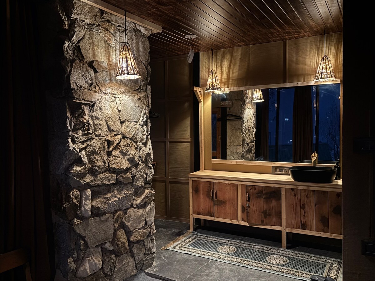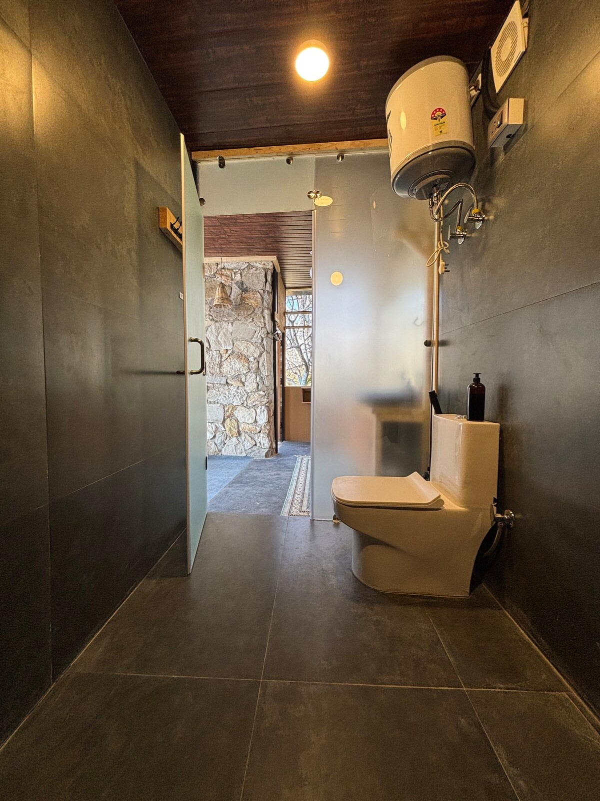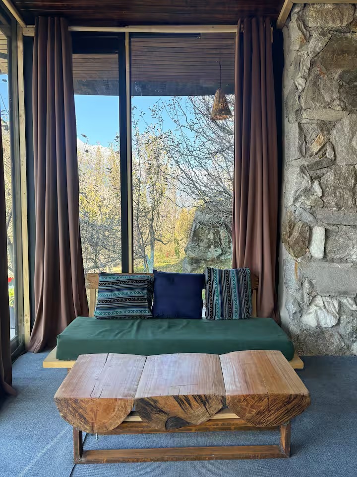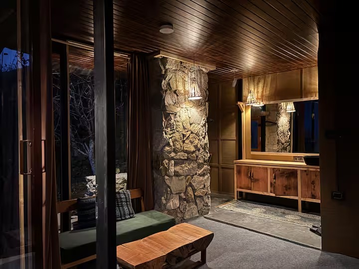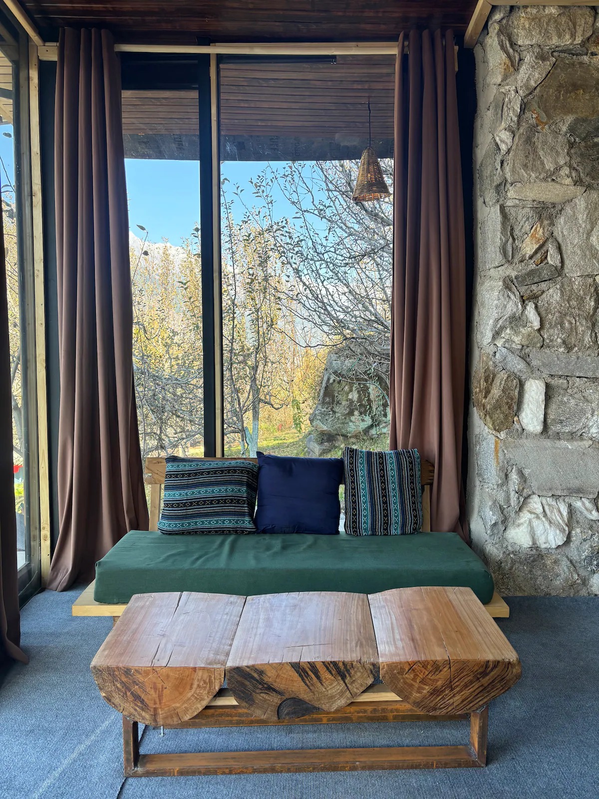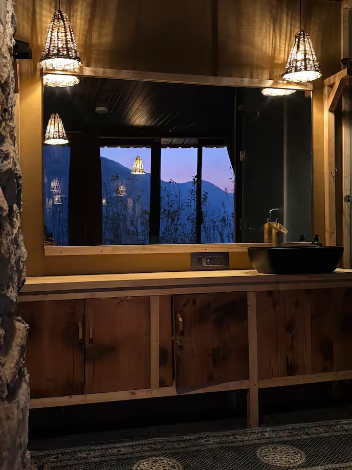 This private accommodation includes one bedroom with king bed, spacious seating, sit-outs, a beautiful cafe to work and chill, incredible sunset/sunrise view, waterfall view, Manali skyline and some of the famous peaks right from your huge window.