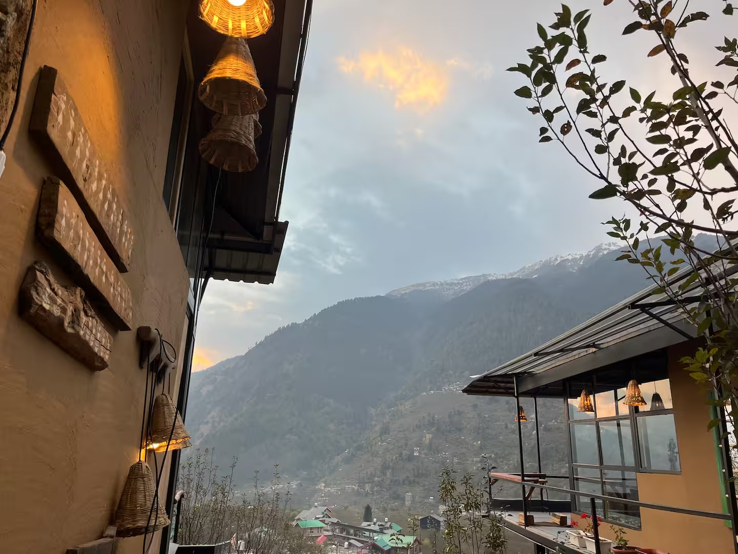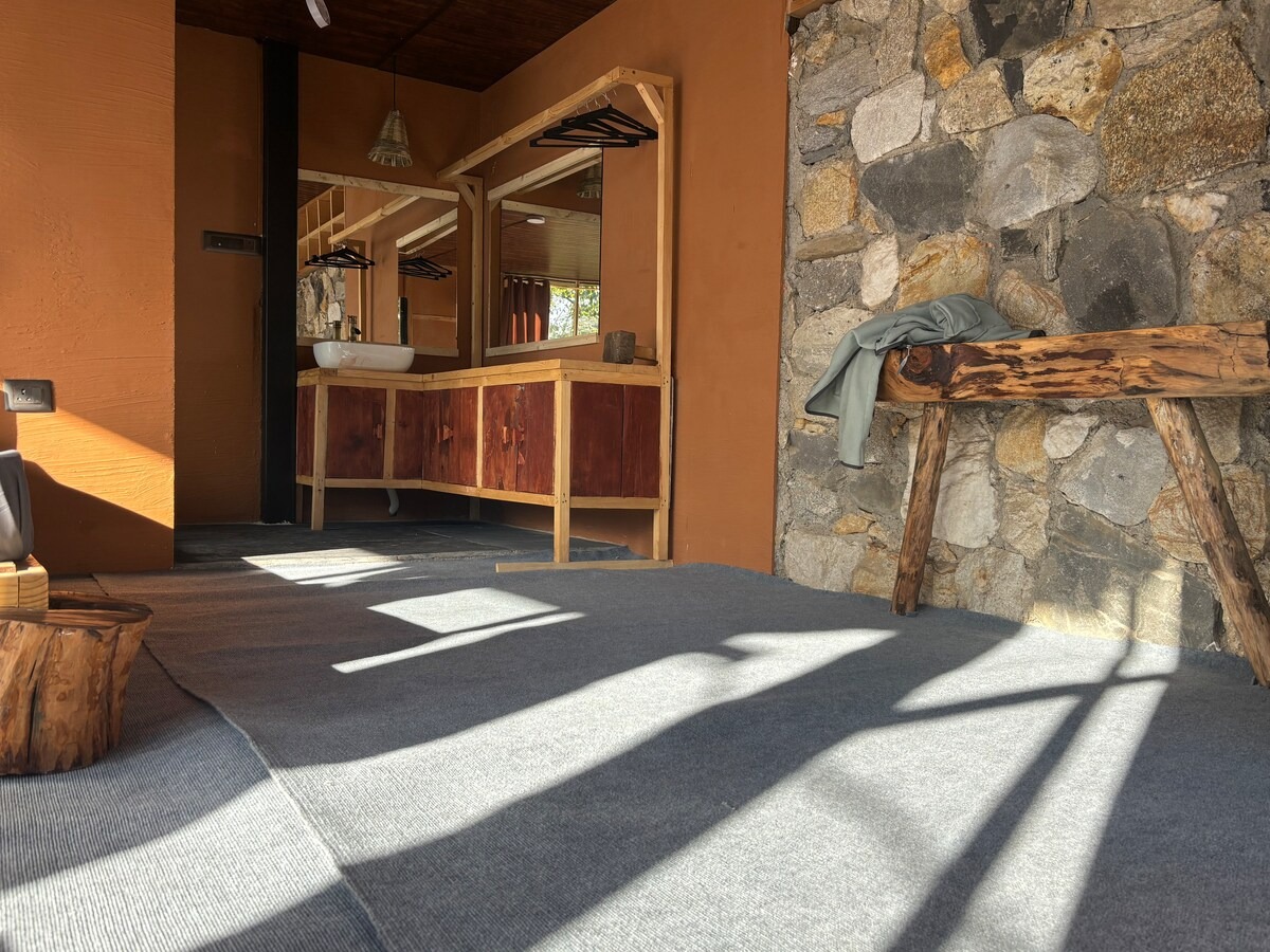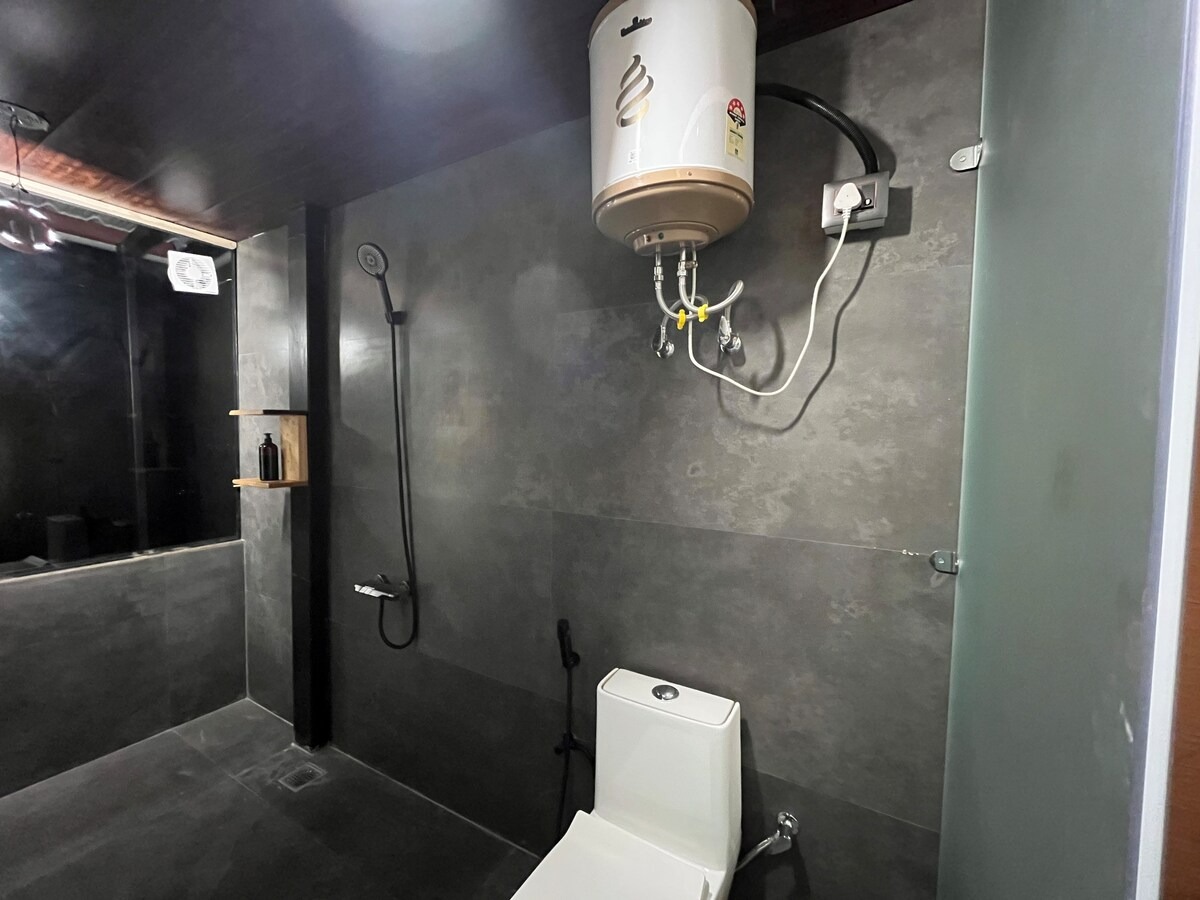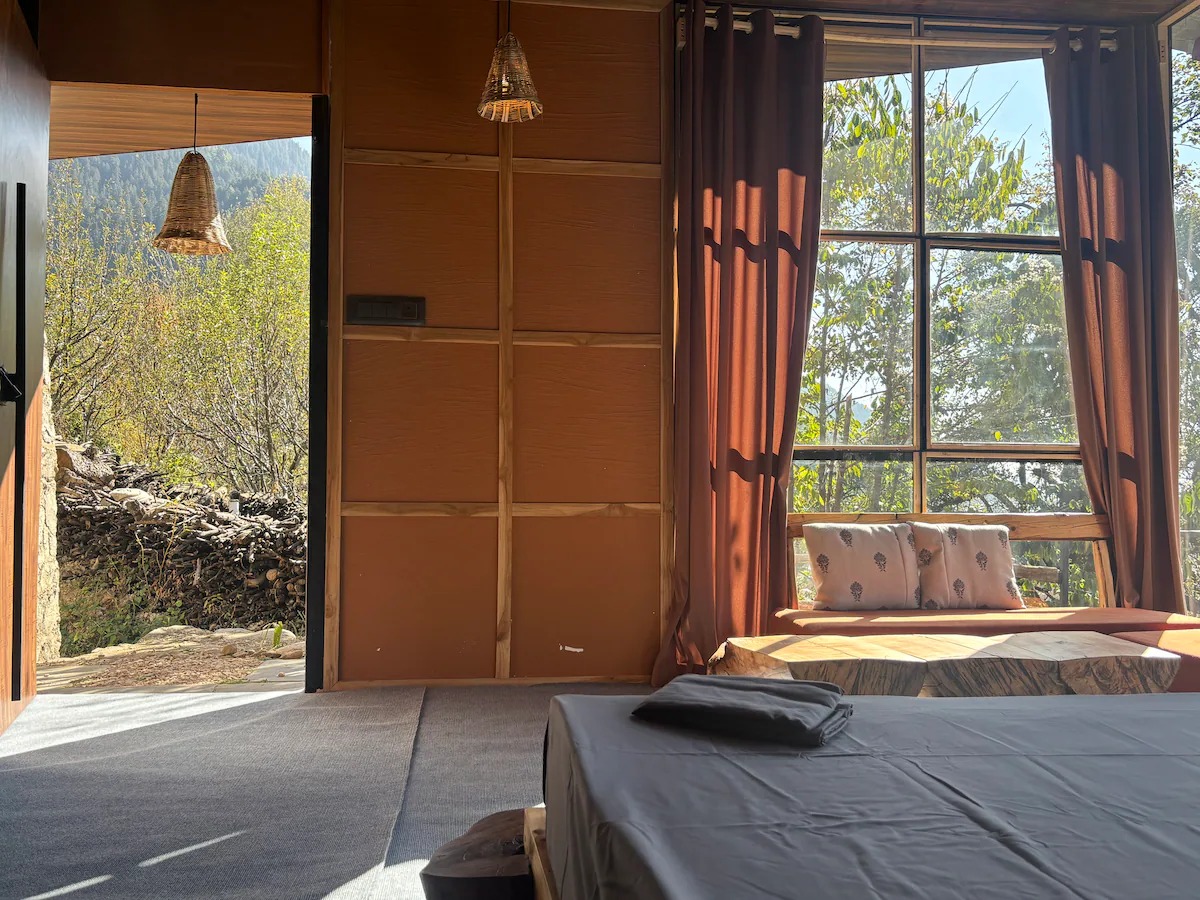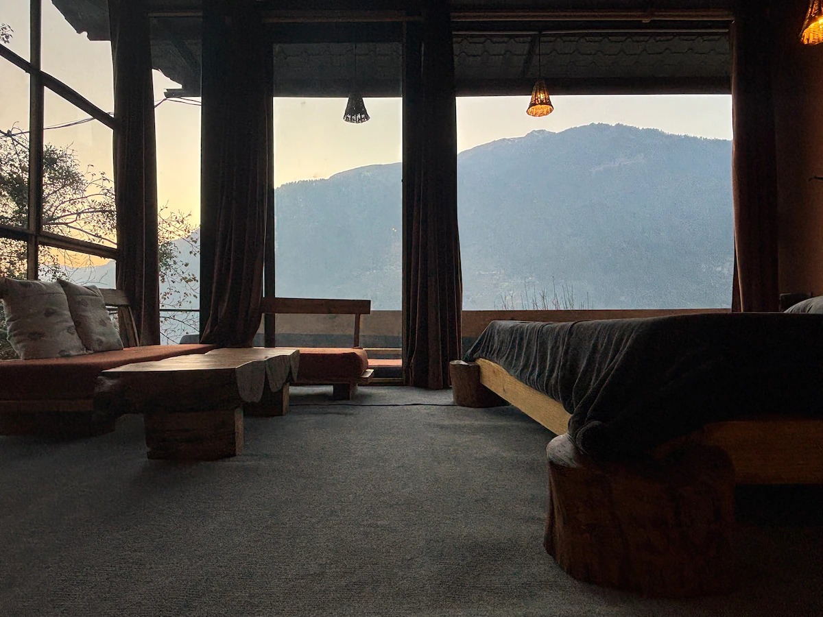 This private accommodation includes one bedroom with king bed, spacious seating, sit-outs, a beautiful cafe to work and chill, incredible sunset/sunrise view, waterfall view, Manali skyline and some of the famous peaks right from your huge window.