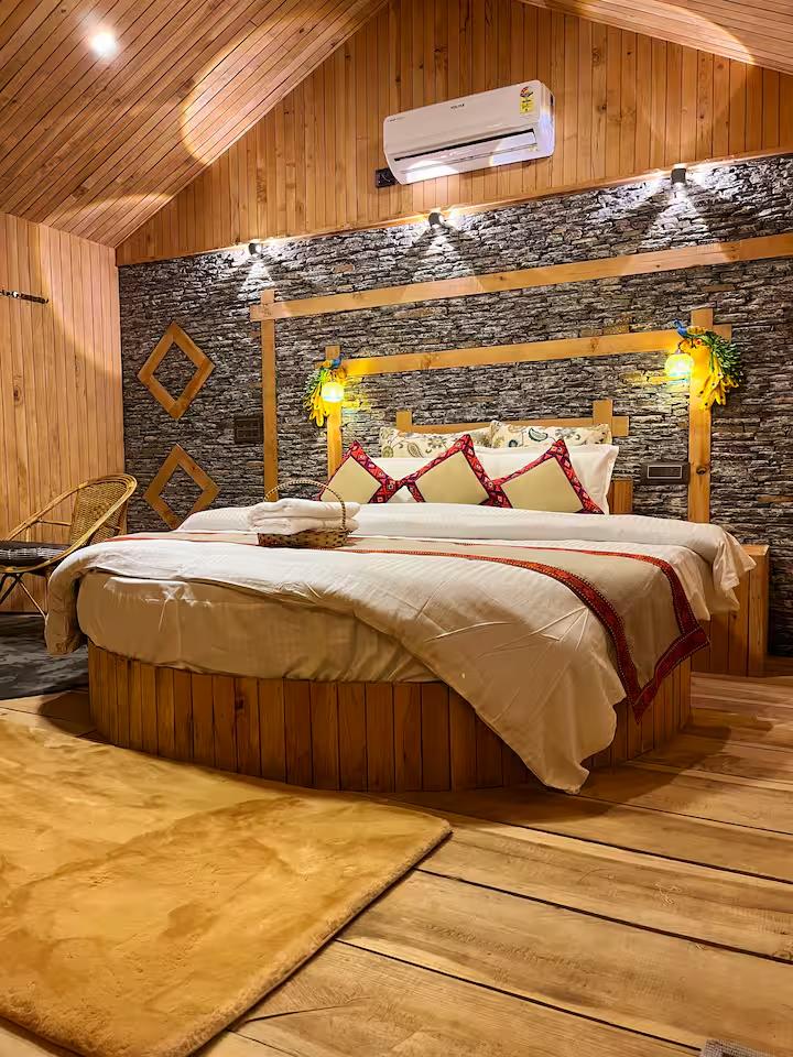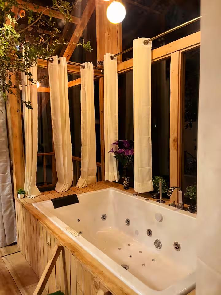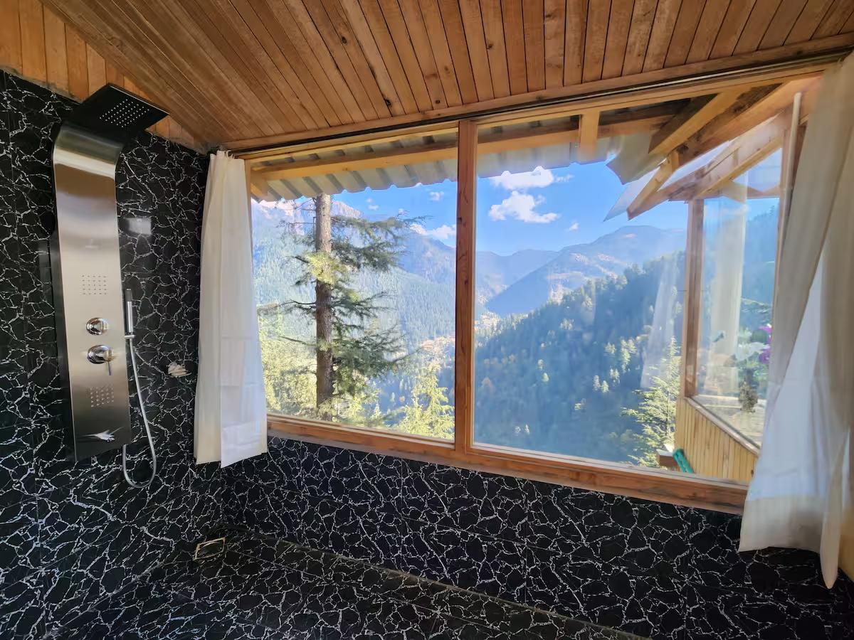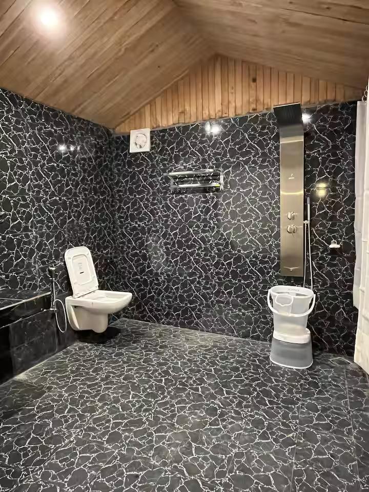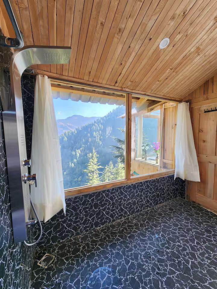 • Luxury & Comfort: Unwind in the indoor jacuzzi while taking in the scenery. The space also features high-quality, modern bathroom fittings seamlessly integrated into the rustic aesthetic.
